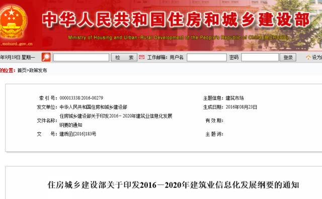 9月19日,住建部官网发文,印发《2016-2020年建筑业信息化发展纲要》,旨在增强建筑业信息化发展能力,优化建筑业信息化发展环境,加快推动信息技术与建筑业发展深度融合。 各省、自治区住房城乡建设厅,直辖市建委(规委),新疆生产建设兵团建设局: 为贯彻落实《中共中央 国务院关于进一步加强城市规划建设管理工作的若干意见》及《国家信息化发展战略纲要》,进一步提升建筑业信息化水平,我部组织编制了《2016-2020年建筑业信息化发展纲要》。现印发给你们,请结合实际贯彻执行。 附件:2016-2020年建筑业信息化发展纲要 中华人民共和国住房和城乡建设部 2016年8月23日 2016-2020年建筑业信息化发展纲要 建筑业信息化是建筑业发展战略的重要组成部分,也是建筑业转变发展方式、提质增效、节能减排的必然要求,对建筑业绿色发展、提高人民生活品质具有重要意义。 一、指导思想 贯彻党的十八大以来、国务院推进信息化发展相关精神,落实创新、协调、绿色、开放、共享的发展理念及国家大数据战略、“互联网+”行动等相关要求,实施《国家信息化发展战略纲要》,增强建筑业信息化发展能力,优化建筑业信息化发展环境,加快推动信息技术与建筑业发展深度融合,充分发挥信息化的引领和支撑作用,塑造建筑业新业态。 二、发展目标 “十三五”时期,全面提高建筑业信息化水平,着力增强BIM、大数据、智能化、移动通讯、云计算、物联网等信息技术集成应用能力,建筑业数字化、网络化、智能化取得突破性进展,初步建成一体化行业监管和服务平台,数据资源利用水平和信息服务能力明显提升,形成一批具有较强信息技术创新能力和信息化应用达到国际先进水平的建筑企业及具有关键自主知识产权的建筑业信息技术企业。 三、主要任务 (一)企业信息化 建筑企业应积极探索“互联网+”形势下管理、生产的新模式,深入研究BIM、物联网等技术的创新应用,创新商业模式,增强核心竞争力,实现跨越式发展。 进一步完善并集成企业运营管理信息系统、生产经营管理信息系统,实现企业管理信息系统的升级换代。深度融合BIM、大数据、智能化、移动通讯、云计算等信息技术,实现BIM与企业管理信息系统的一体化应用,促进企业设计水平和管理水平的提高。 (2)加快BIM普及应用,实现勘察设计技术升级。 在工程项目勘察中,推进基于BIM进行数值模拟、空间分析和可视化表达,研究构建支持异构数据和多种采集方式的工程勘察信息数据库,实现工程勘察信息的有效传递和共享。在工程项目策划、规划及监测中,集成应用BIM、GIS、物联网等技术,对相关方案及结果进行模拟分析及可视化展示。在工程项目设计中,普及应用BIM进行设计方案的性能和功能模拟分析、优化、绘图、审查,以及成果交付和可视化沟通,提高设计质量。 推广基于BIM的协同设计,开展多专业间的数据共享和协同,优化设计流程,提高设计质量和效率。研究开发基于BIM的集成设计系统及协同工作系统,实现建筑、结构、水暖电等专业的信息集成与共享。 (3)强化企业知识管理,支撑智慧企业建设。 研究改进勘察设计信息资源的获取和表达方式,探索知识管理和发展模式,建立勘察设计知识管理信息系统。不断开发勘察设计信息资源,完善知识库,实现知识的共享,充分挖掘和利用知识的价值,支撑智慧企业建设。 (1) 加强信息化基础设施建设。 建立满足企业多层级管理需求的数据中心,可采用私有云、公有云或混合云等方式。在施工现场建设互联网基础设施,广泛使用无线网络及移动终端,实现项目现场与企业管理的互联互通强化信息安全,完善信息化运维管理体系,保障设施及系统稳定可靠运行。 (2) 推进管理信息系统升级换代。 普及项目管理信息系统,开展施工阶段的BIM基础应用。有条件的企业应研究BIM应用条件下的施工管理模式和协同工作机制,建立基于BIM的项目管理信息系统。 推进企业管理信息系统建设。完善并集成项目管理、人力资源管理、财务资金管理、劳务管理、物资材料管理等信息系统,实现企业管理与主营业务的信息化。有条件的企业应推进企业管理信息系统中项目业务管理和财务管理的深度集成,实现业务财务管理一体化。推动基于移动通讯、互联网的施工阶段多参与方协同工作系统的应用,实现企业与项目其他参与方的信息沟通和数据共享。注重推进企业知识管理信息系统、商业智能和决策支持系统的应用,有条件的企业应探索大数据技术的集成应用,支撑智慧企业建设。 (3) 拓展管理信息系统新功能。 研究建立风险管理信息系统,提高企业风险管控能力。建立并完善电子商务系统,或利用第三方电子商务系统,开展物资设备采购和劳务分包,降低成本。开展BIM与物联网、云计算、3S等技术在施工过程中的集成应用研究,建立施工现场管理信息系统,创新施工管理模式和手段。 (1)优化工程总承包项目信息化管理,提升集成应用水平。 进一步优化工程总承包项目管理组织架构、工作流程及信息流,持续完善项目资源分解结构和编码体系。深化应用估算、投标报价、费用控制及计划进度控制等信息系统,逐步建立适应国际工程的估算、报价、费用及进度管控体系。继续完善商务管理、资金管理、财务管理、风险管理及电子商务等信息系统,提升成本管理和风险管控水平。